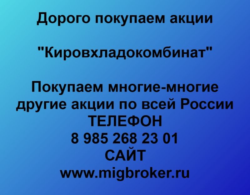 Покупаем акции ОАО Кировхладокомбинат и любые другие акции по всей России