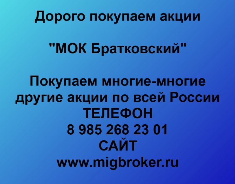 Покупаем акции МОК Братковский и любые другие акции по всей России