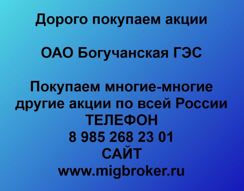 Продать акции Богучанская ГЭС. Дорого покупаем акции.