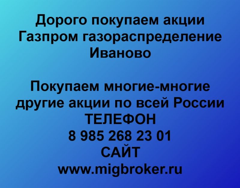 Продать акции Газпром газораспределение Иваново. Дорого покупаем акции.