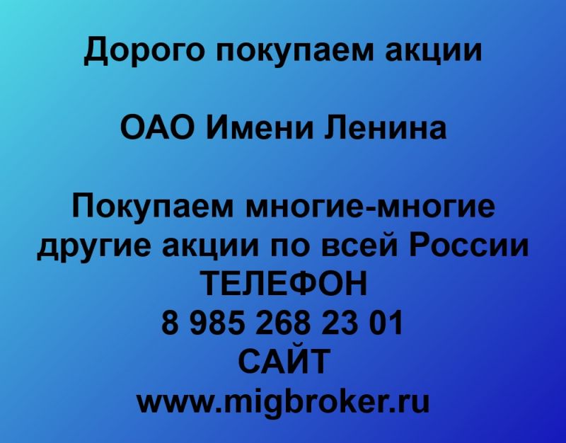 Продать акции Имени Ленина. Дорого покупаем акции.