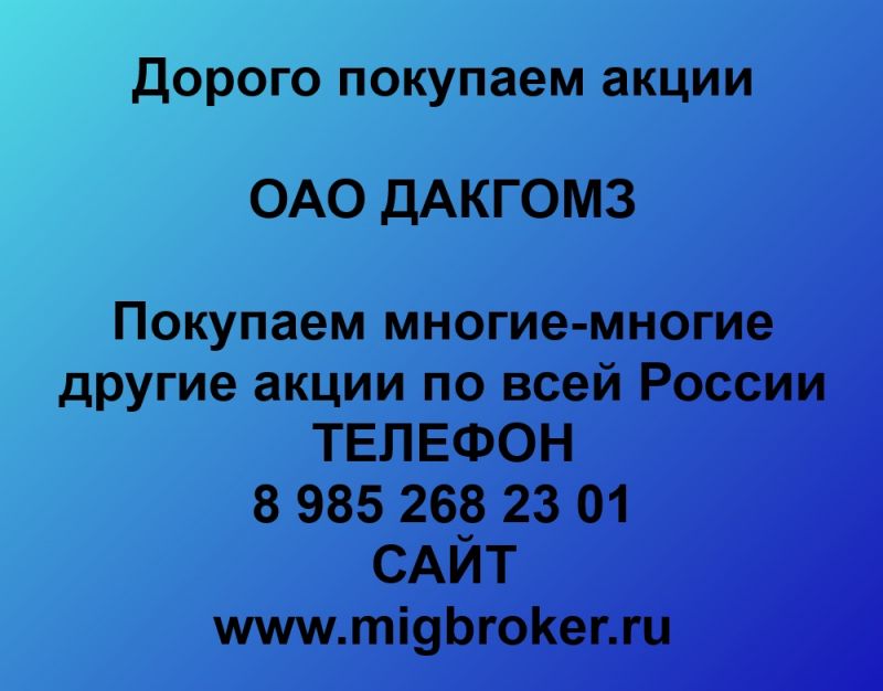 Продать акции ДАКГОМЗ. Дорого покупаем акции.