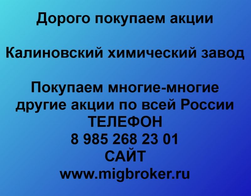 Продать акции Калиновский химический завод. Дорого покупаем акции.