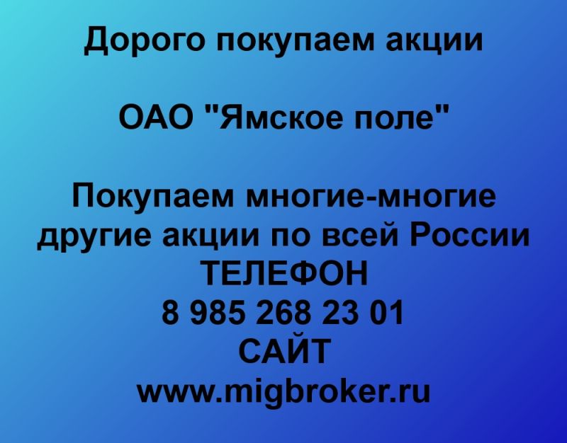 Покупаем акции ОАО Ямское поле и любые другие акции по всей России Покупка акций Ямское поле в любом городе У нас лучшая цена акций...