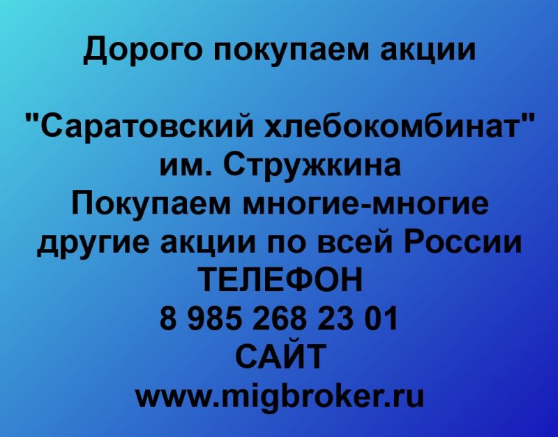 Покупаем акции Саратовский хлебокомбинат и любые другие акции по всей России Покупка акций Саратовский хлебокомбинат в любом...