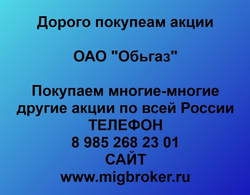 Покупаем акции ОАО Обьгаз и любые другие акции по всей России Покупка акций Обьгаз в любом городе У нас лучшая цена акций...
