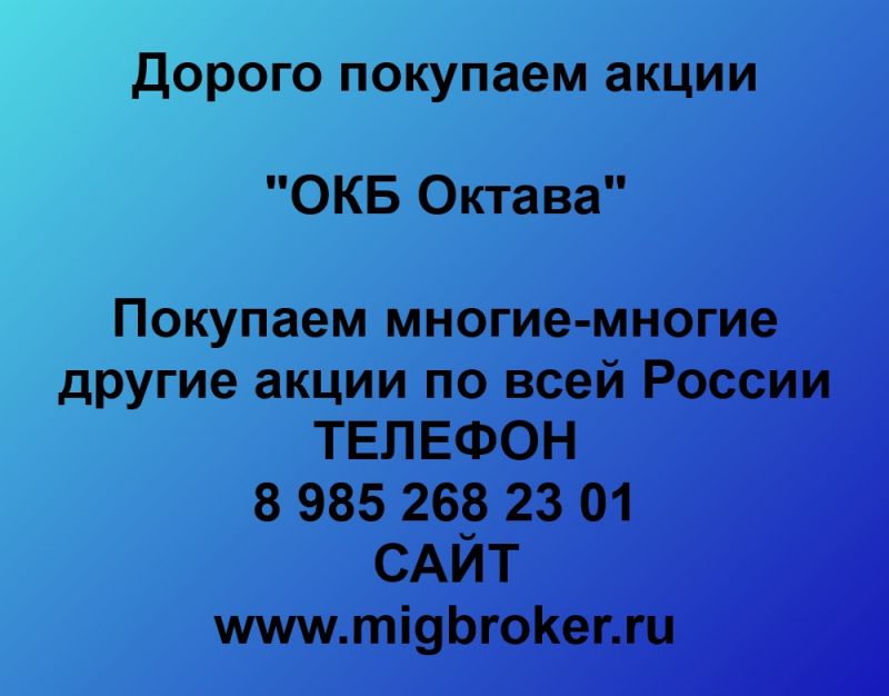 Покупаем акции ОКБ Октава и любые другие акции по всей России Покупка акций ОКБ Октава в любом городе У нас лучшая цена акций ОКБ...