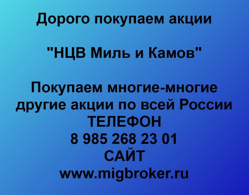 Продать акции НЦВ Миль и Камов. Дорого покупаем акции.