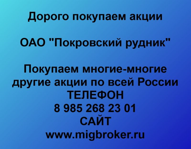 Покупаем акции ОАО Покровский рудник и любые другие акции по всей России Покупка акций Покровский рудник в любом городе У нас лучшая...
