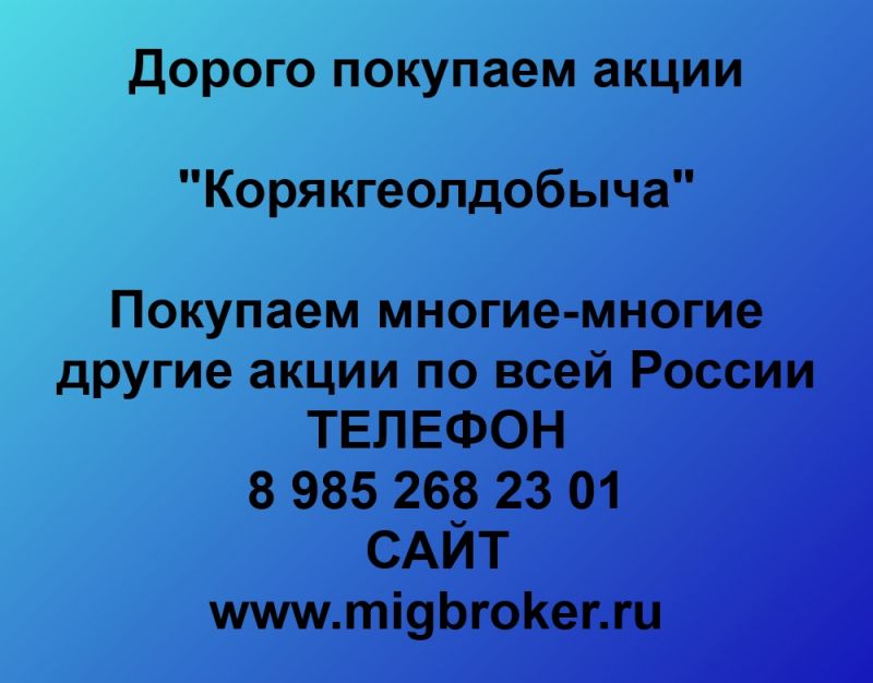 Продать акции Корякгеолдобыча. Дорого покупаем акции.