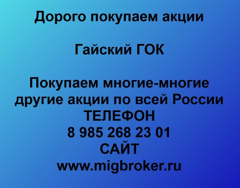 Продать акции Гайский ГОК. Дорого покупаем акции.