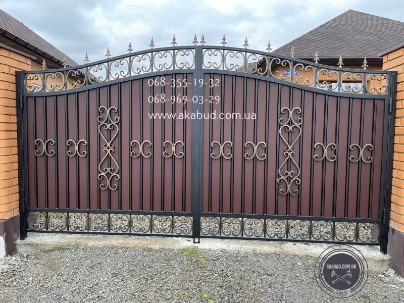 Продаж кованих розпашних воріт з профнастилу, навісів, парканів, альтанок і козирків