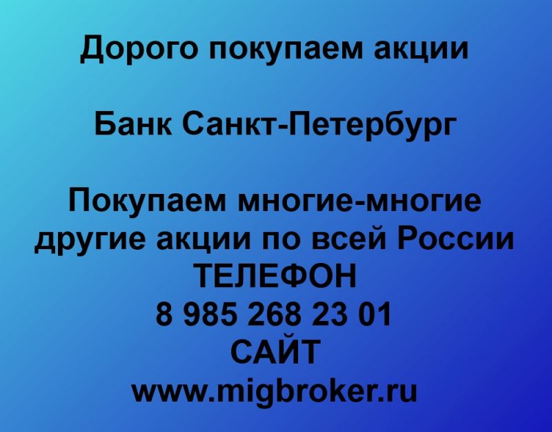 Продать акции Банк Санкт-Петербург. Дорого покупаем акции.