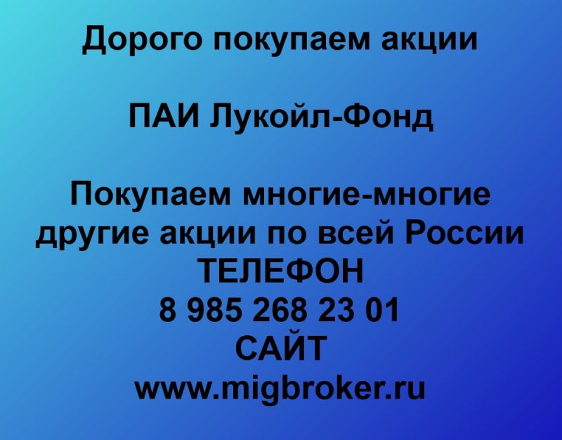 Продать акции ПАИ Лукойл-Фонд. Дорого покупаем акции.