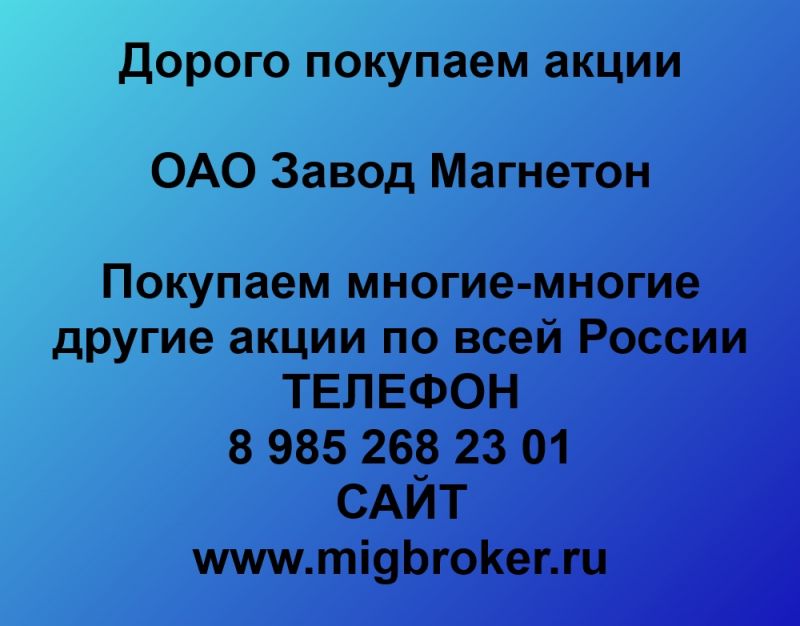 Продать акции Завод Магнетон. Дорого покупаем акции.
