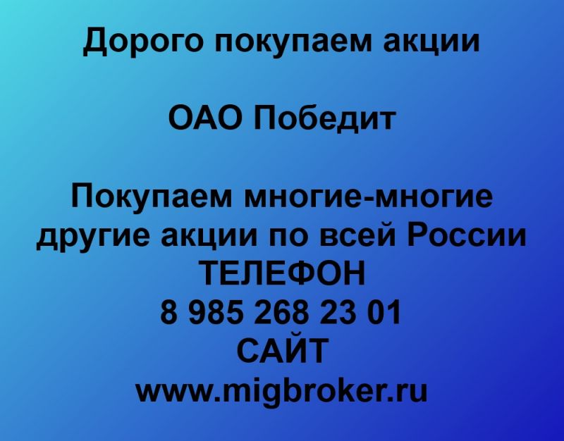 Продать акции Победит. Дорого покупаем акции.