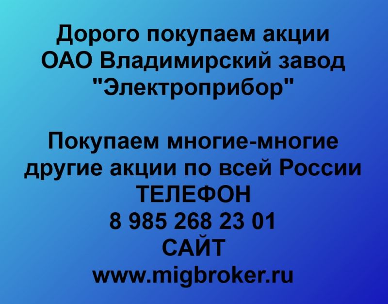 Покупаем акции Владимирский завод Электроприбор и любые другие акции по всей России