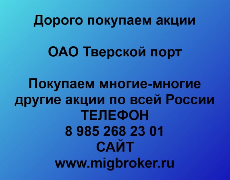 Покупаем акции ОАО Тверской порт и любые другие акции по всей России