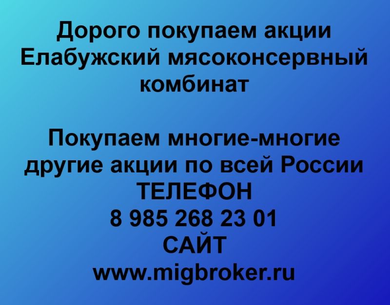 Покупаем акции Елабужский мясоконсервный комбинат и любые другие акции по всей России Покупка акций Елабужский мясоконсервный...