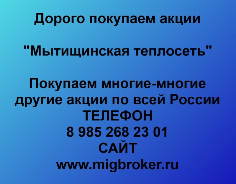 Покупаем акции «Мытищинская теплосеть» и любые другие акции по всей России Покупка акций Мытищинская теплосеть в любом...