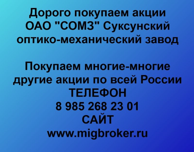 Покупаем акции «СОМЗ Суксунский оптико-механический завод» и любые другие акции по всей России Покупка акций СОМЗ Суксунский...