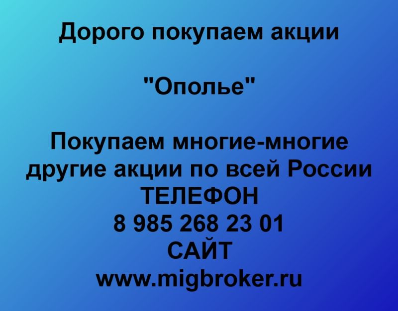 Покупаем акции ОАО Ополье и любые другие акции по всей России Покупка акций Ополье в любом городе У нас лучшая цена акций...