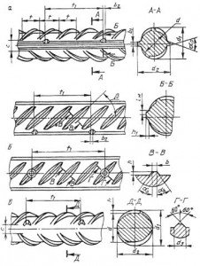 3.1Арматурная сталь периодического профиля - стержни с равномерно расположенными на их поверхности под углом к продольной оси стержня поперечными выступами (рифлением) для улучшения сцепления с бетоном.