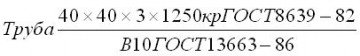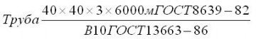 Трубы наружным размером 40 мм, толщиной стенки 3 мм, длиной, кратной 1250 мм, из стали марки 10, группы В ГОСТ 13663-86: