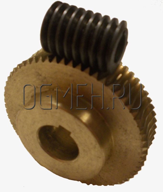 Изготавливаем червячные пары ( червячные передачи) с числом заходов до 6 и модулем до 20. Червячное колесо можем изготовить из двух разных материалов – венец создается из антифрикционного (бронзы), а сердечник – из стали или чугуна - более прочные и дешевые. Червячная пара - механическая передача, осуществляемая с помощью сцепления «червяка» с червячным колесом. Червяком называется специальный винт с резьбой, близкой по профилю к трапецеидальной. Червячная передача передает вращение только в одном направлении- от червяка к шестерне и имеет очень высокий коэффициент передачи.