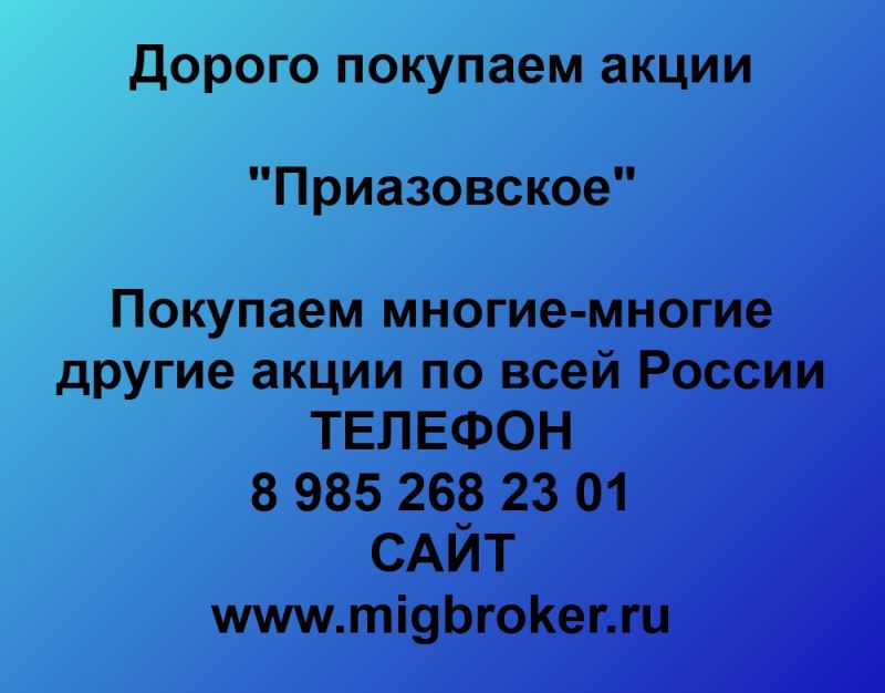 Покупаем акции ОАО Приазовское и любые другие акции по всей России