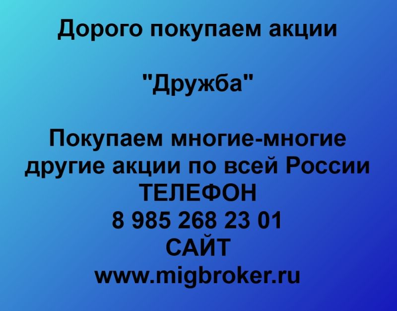 Покупаем акции ОАО Дружба и любые другие акции по всей России
