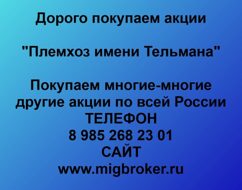 Покупаем акции Племхоз имени Тельмана и любые другие акции по всей России