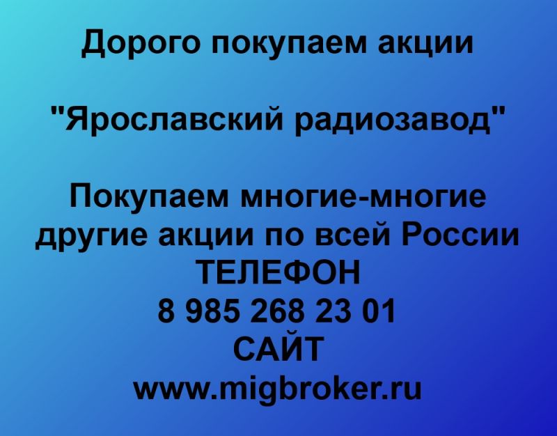 Продать акции Ярославский радиозавод. Дорого покупаем акции.