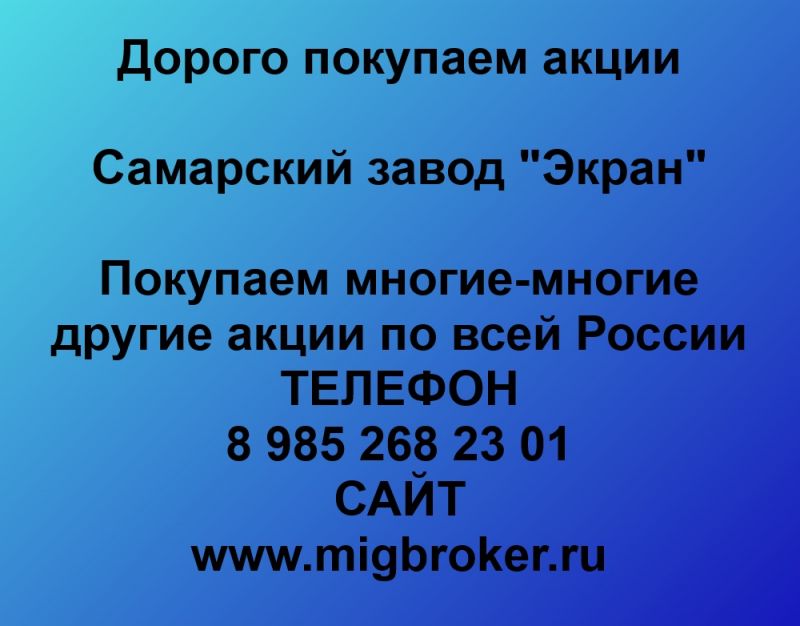 Продать акции Самарский завод Экран. Дорого покупаем акции.