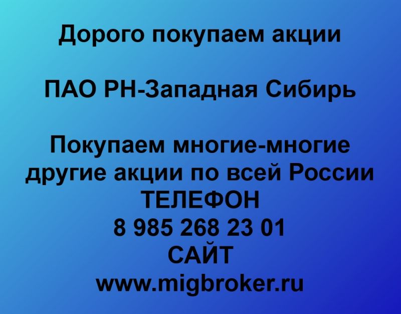 Продать акции РН-Западная Сибирь. Дорого покупаем акции.