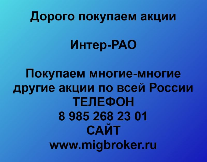 Продать акции ИНТЕР РАО. Дорого покупаем акции.