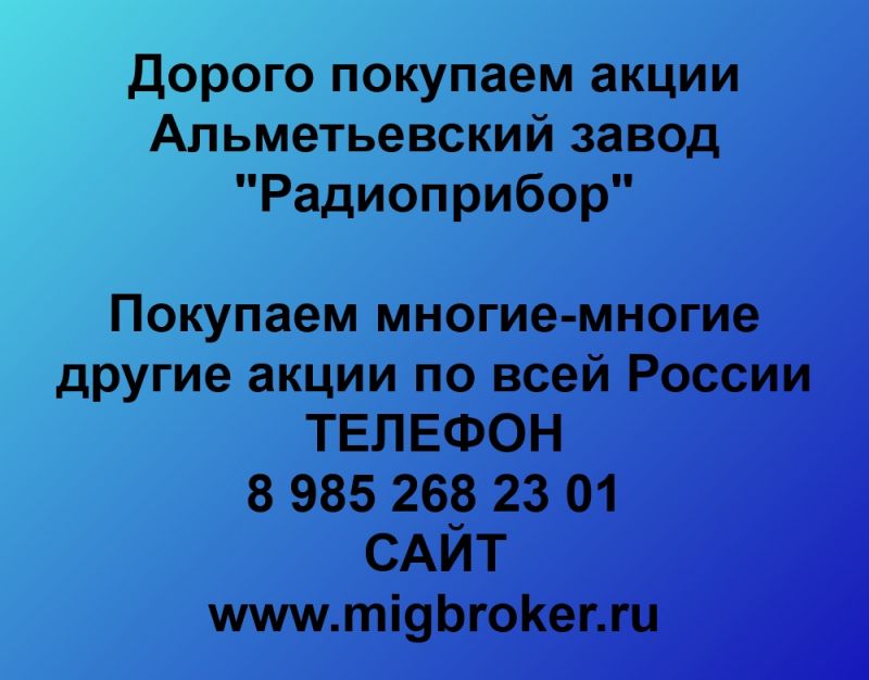 Покупаем акции Альметьевский завод Радиоприбор и любые другие акции по всей России