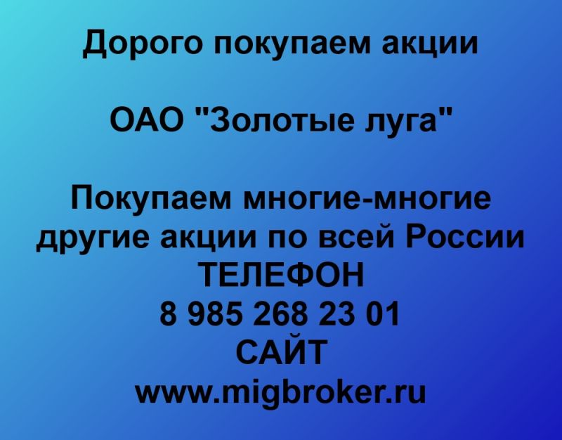 Покупаем акции ОАО Золотые луга и любые другие акции по всей России