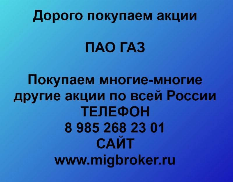 Продать акции ПАО ГАЗ. Дорого покупаем акции.
