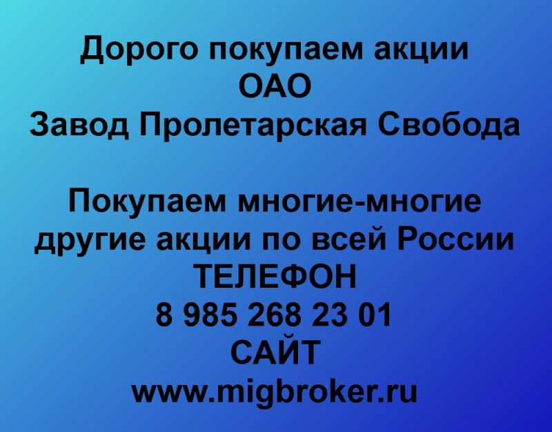 Покупаем акции ОАО Завод Пролетарская Свобода и любые другие акции по всей России Покупка акций Завод Пролетарская Свобода в любом...