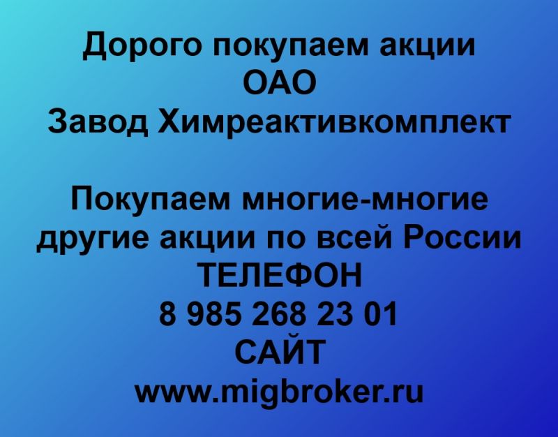 Покупаем акции Завод Химреактивкомплект и любые другие акции по всей России Покупка акций Завод Химреактивкомплект в любом...