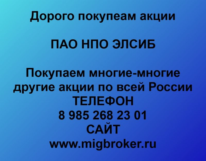 Покупаем акции НПО ЭЛСИБ и любые другие акции по всей России
