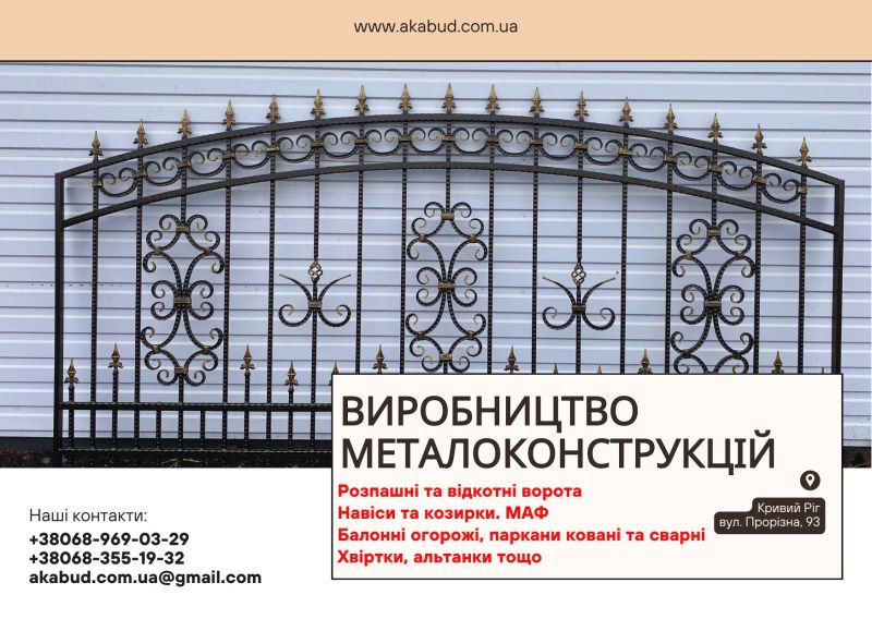 Виробництво металоконструкцій під ключ. Ворота, навіси, МАФ