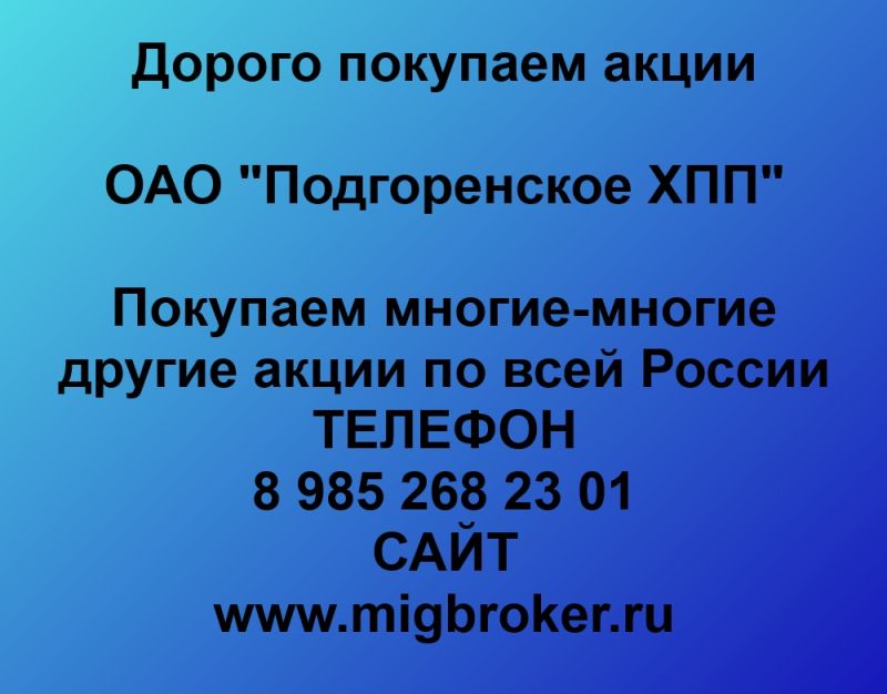 Покупаем акции ОАО Подгоренское ХПП и любые другие акции по всей России