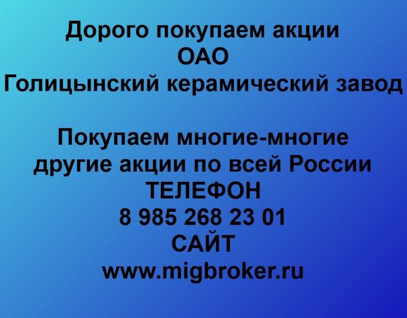 Покупаем акции «Голицынский керамический завод» и любые другие акции по всей России