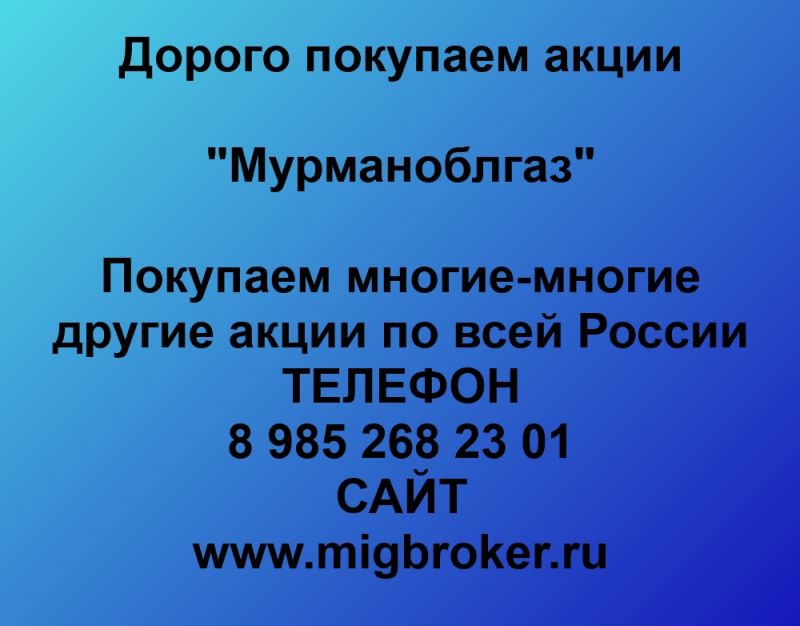 Покупаем акции ОАО Мурманоблгаз и любые другие акции по всей России