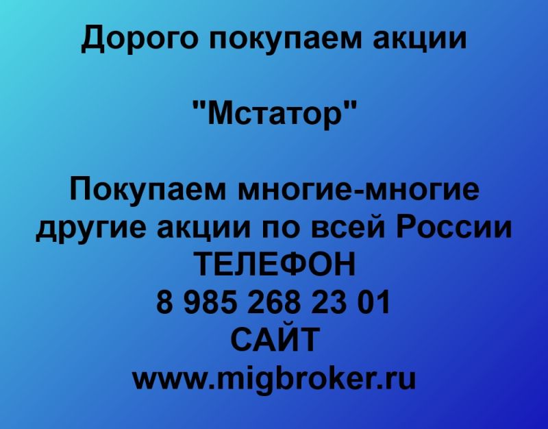 Покупаем акции ПАО Мстатор и любые другие акции по всей России