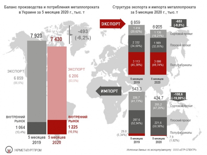 during the reporting period, Ukrainian metallurgical enterprises produced of 7.43 million tonnes of rolled products, which is 6.2% less than in January – may 2020, which according to OOO "ETR-Spectrum", the exported order of 6.21 million tonnes, or 83.5 per cent. In the same period of 2019, the share of exports amounted to 86,6% (of 6.86 million tonnes with a total metal production of 7.92 million tons).