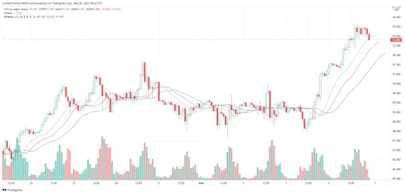 В пятницу, 4 февраля, цена апрельских фьючерсов на нефть марки Brent достигала 93,63 доллара за баррель, свидетельствуют данные биржи ICE. Мартовские фьючерсы на нефть WTI на торгах в Нью-Йорке также превышали отметку в 93 доллара за баррель.