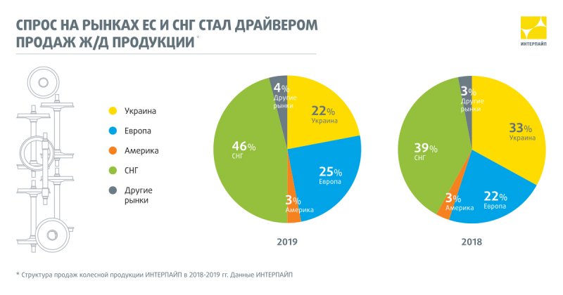 Украинская промышленная компания ИНТЕРПАЙП в 2019 году сократила продажи трубной и железнодорожной продукции в тоннах на 7%. Общий объем реализации составил 798 тыс. т. Доля экспорта в структуре реализации составила 76%, тогда как доля рынка Украины уменьшилась с 28% до 24%.